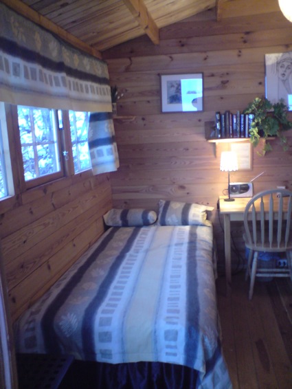 (10 sq meters) has sleeping facilities for two-three. It has one bed